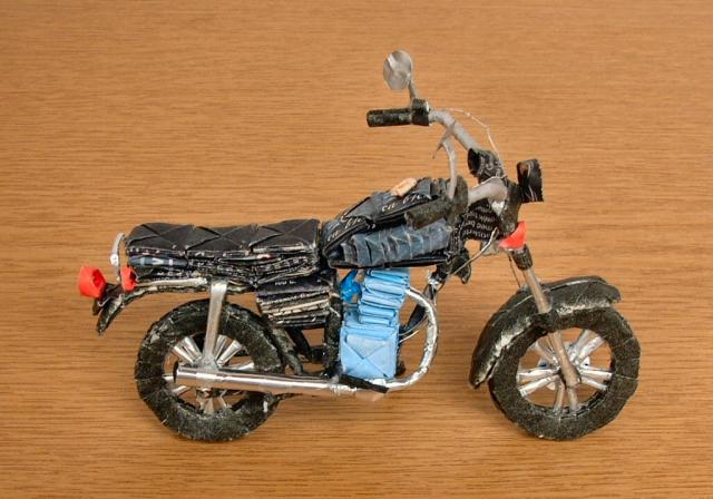 Molnár László főleg teatasakokból 1000 papír technikával (Giang Zi) készíti el rendkívül ötletes alkotásait, amelyekről sokszor igen nehéz megállapítani, hogy miből készültek.
